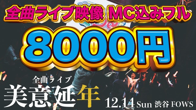 全曲ライブ「美意延年」ライブ映像 2025年12月14日に開催した 全曲ライブ「美意延年」ライブ映像 MC込み フル映像になります ¥8000- ※下記注意点をお読みになってご購入ください。 ・データの容量が大きい為、ご購入者様にはYouTubeの限定公開のURLとDROP BOXのURLを 送らせて頂きます。URLに関しましてはご購入者様のみでお楽しみください。 他の方にURLを共有し、そちらが発覚した場合リンクの削除する場合がございます。 ・ライブ映像なので若干の音割れや振動で若干揺れてる箇所があります。 ・ライブ感を楽しんで頂くためお客様の声や盛り上がりが入っております。 ・照明の兼ね合いで若干見えにくい箇所がございます。 ・全曲ライブでの映像なのでshort ver.でのライブもあります。 ・こちらの商品はご自身でお楽しみ頂くものになっております。 SNS等に投稿する行為は禁止となっております。